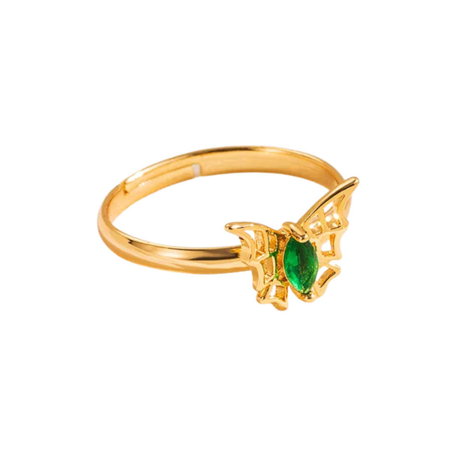 Add a touch of whimsy to your look with this charming gold bat earring featuring a sparkling green zirconia crystal.