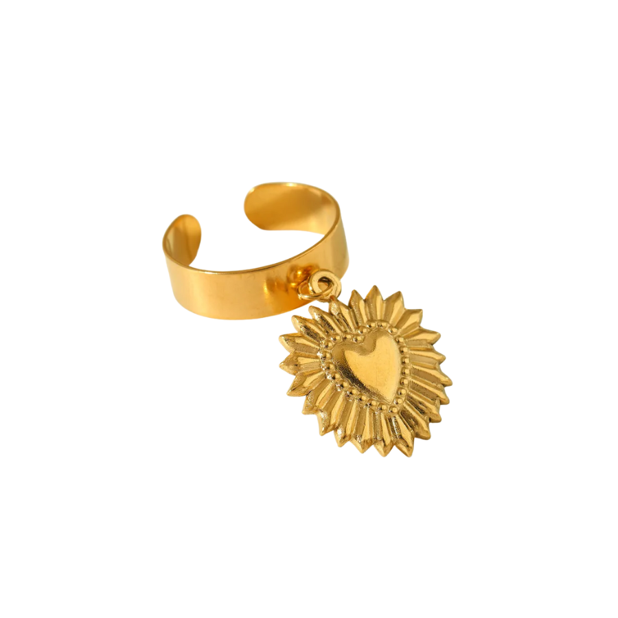 Add a bold touch to your style with this playful gold ring featuring a chunky gothic heart charm. Its unique design blends edgy vibes with a hint of romance, making it the perfect statement piece for any occasion.