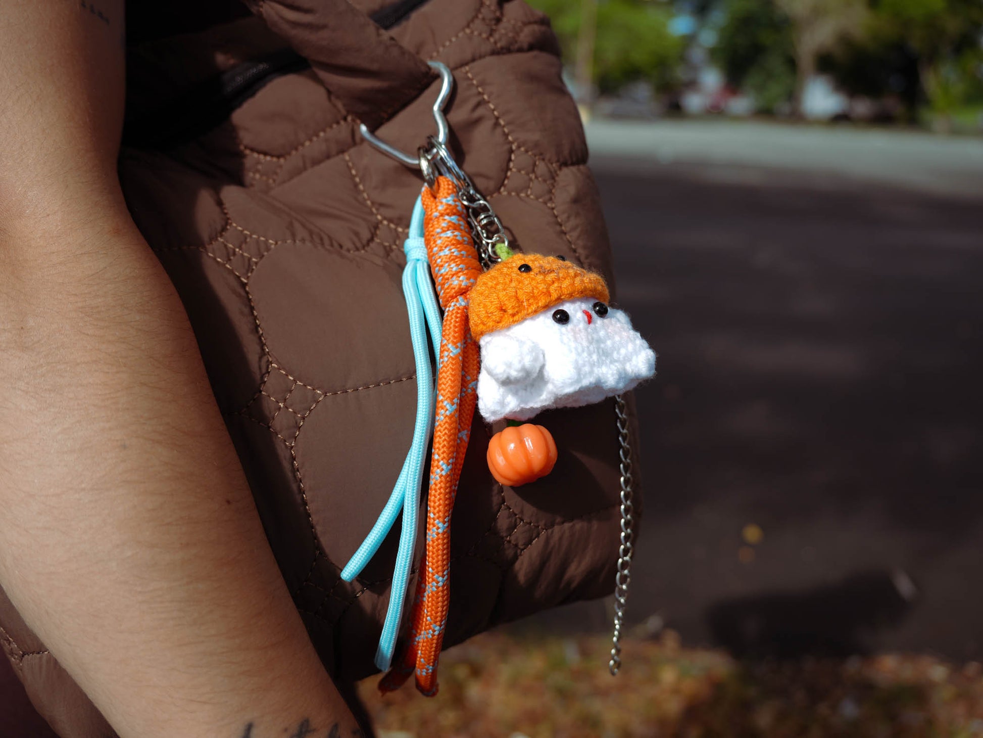 Capture all the cozy, spooky feels of autumn with this adorable pumpkin ghost keychain. Perfect for adding a touch of fall charm to your keys or bag, it brings playful vibes and festive fun wherever you go.