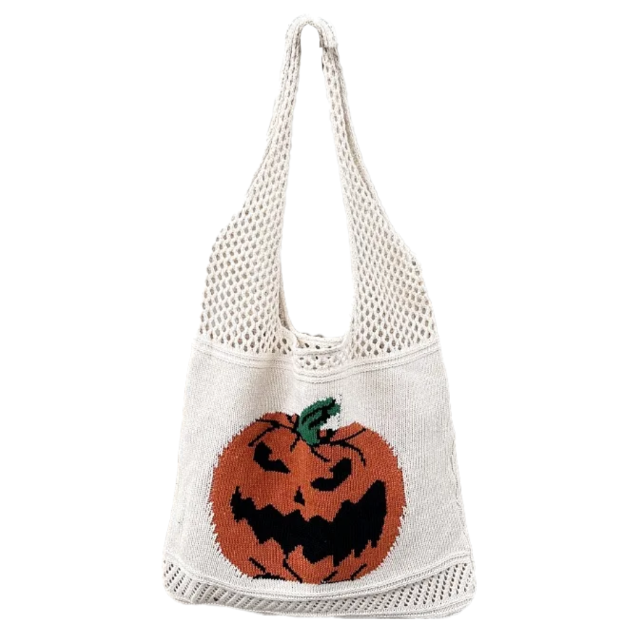 Add some seasonal charm to your day with this playful tote bag featuring a pumpkin on the front. Perfect for carrying your essentials with a fun autumn vibe.