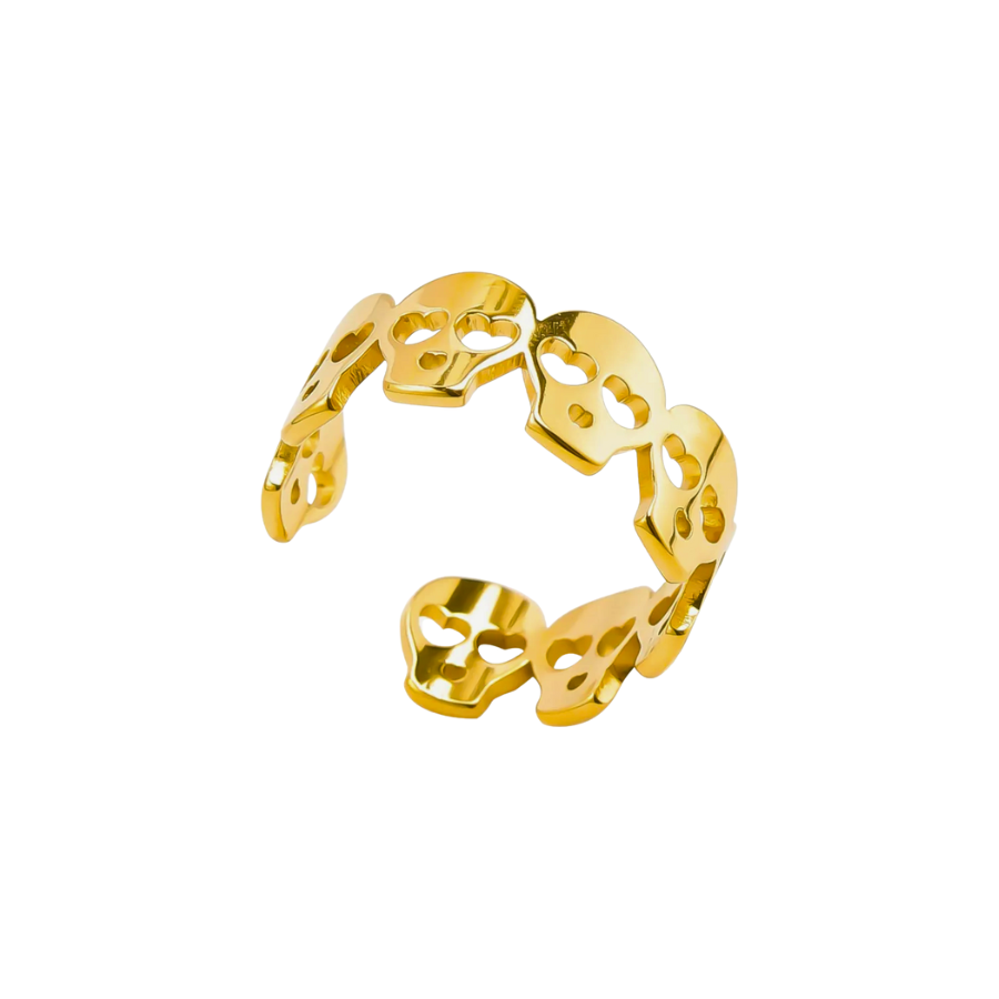 The Willow Ring, featuring a gold skull adorned with charming heart-shaped eyes.